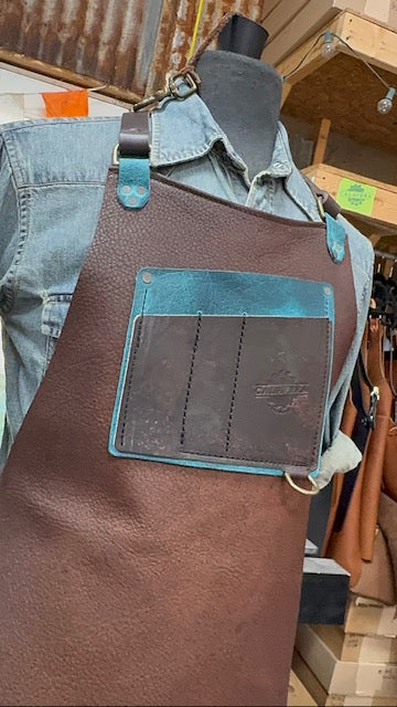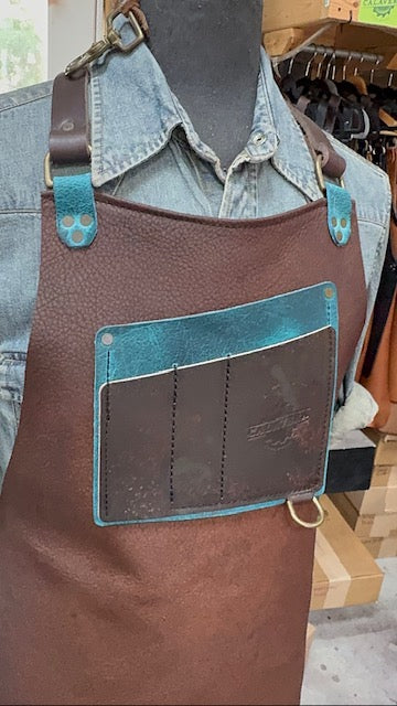 We take all the liberties with our hand-dyed work aprons, so you can expect that no two are the same and that yours will start off with a character very much its own. Some are darker, some are lighter and some even feature the hide's original brand (those are our favorites) or scars from pesky varmints or barbed-wire. They are designed for an easy break-in for many years of comfortable wear.
